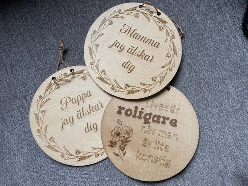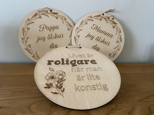 Ge dina nära och kära en oförglömlig present eller skapa en personlig dekorativ detalj till ditt hem med våra personliga träskivor. Låt oss hjälpa dig att skapa något alldeles unikt och speciellt!
